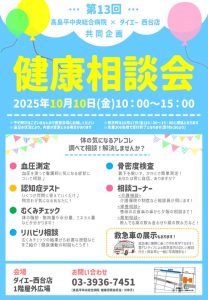 ----------------------------------------- 10月10日(金)10:00~15:00ダイエー西台店1階屋外広場※雨天時は10月17日(金)に順延 ----- ...