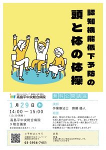 「最近、物忘れが気になる…認知症は誰にとっても他人事ではありません。でも、楽しく予防できたら素敵ですよね。 頭と体を一緒に動かすことで、楽しく取り組める体操です。理学療法士と一緒に体を動かしませんか ...