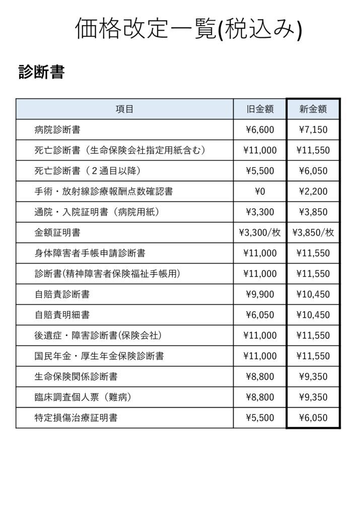昨今の社会情勢の影響による原材料費の高騰や諸経費の値上がりに伴い、当院におきましても下記の保険診療外料金を改定させていただくことになりましたのでご案内申し上げます。